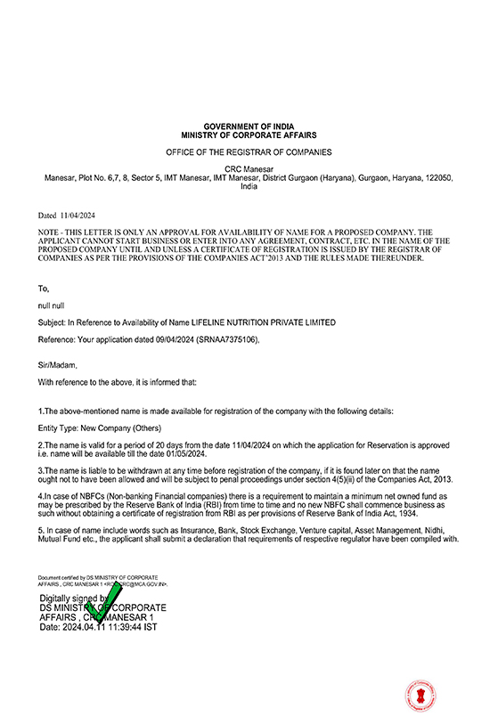 Certicate of Incorporation